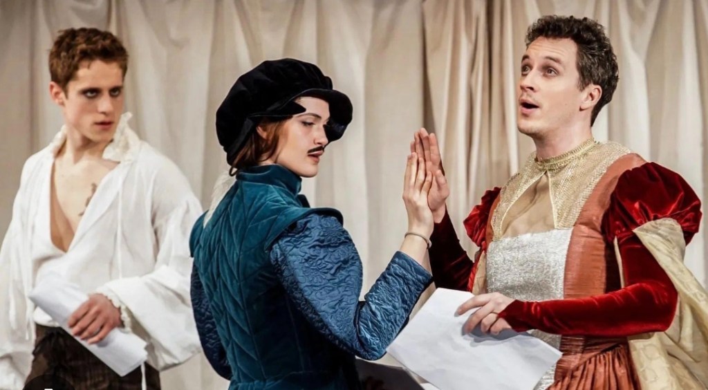 Predstava rediteljke Ane Tomović „Zaljubljeni Šekspir“ zaviruje u to neko davno prošlo vreme i živo dočarava lepote ondašnje pozorišne umetnosti kroz bezmalo tročasovno trajanje koje neosetno prolazi.